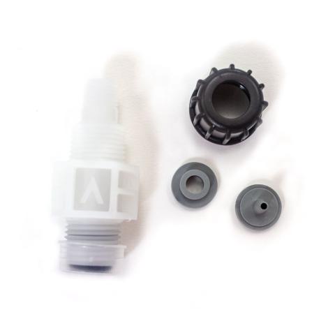 The atomizing nozzle for the AromaSteam aroma system is installed in the steam line to insert aroma oil into the steam line and into the steam room for an aromatic steam shower. This works with the AromaSteam pump released June 2016.